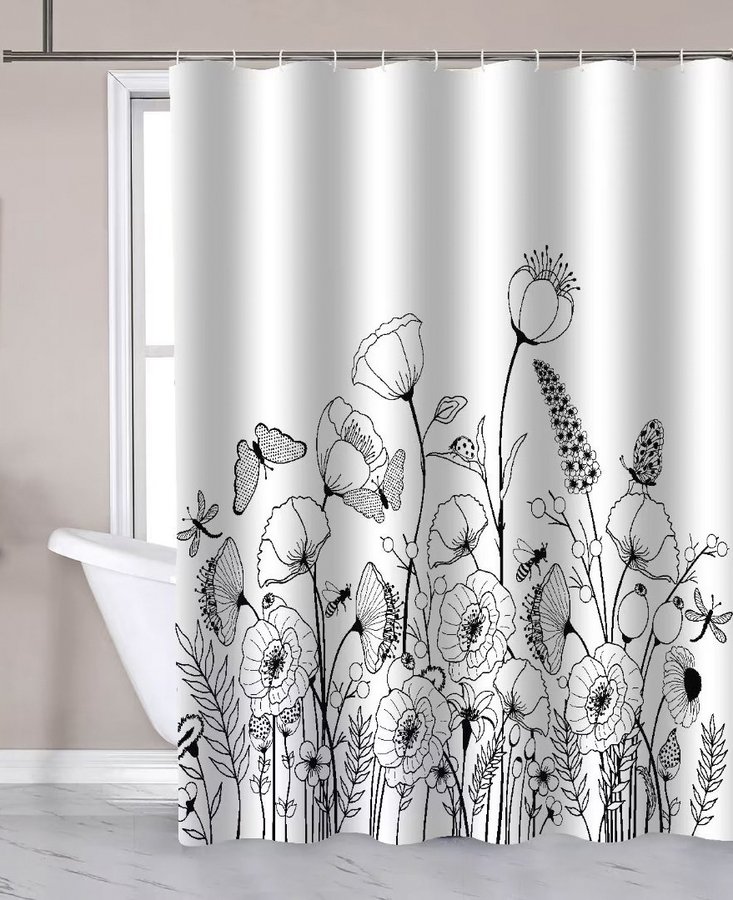 AQUALINE zuhanyfüggöny, 180x180cm, mákvirág (ZP017)